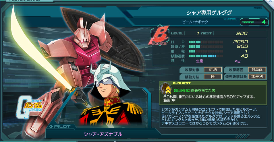 シャア専用のブースタータイプ。ターゲットは無差別だが、生産2倍がついている。
