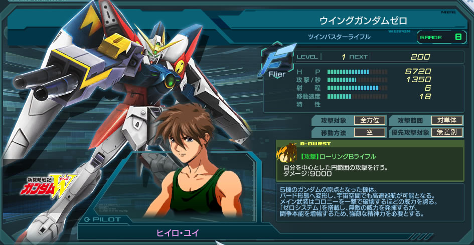なお、この機体は「TV版」のウイングガンダムゼロで、「Endless Waltz版」とは外見が大きく異なる。