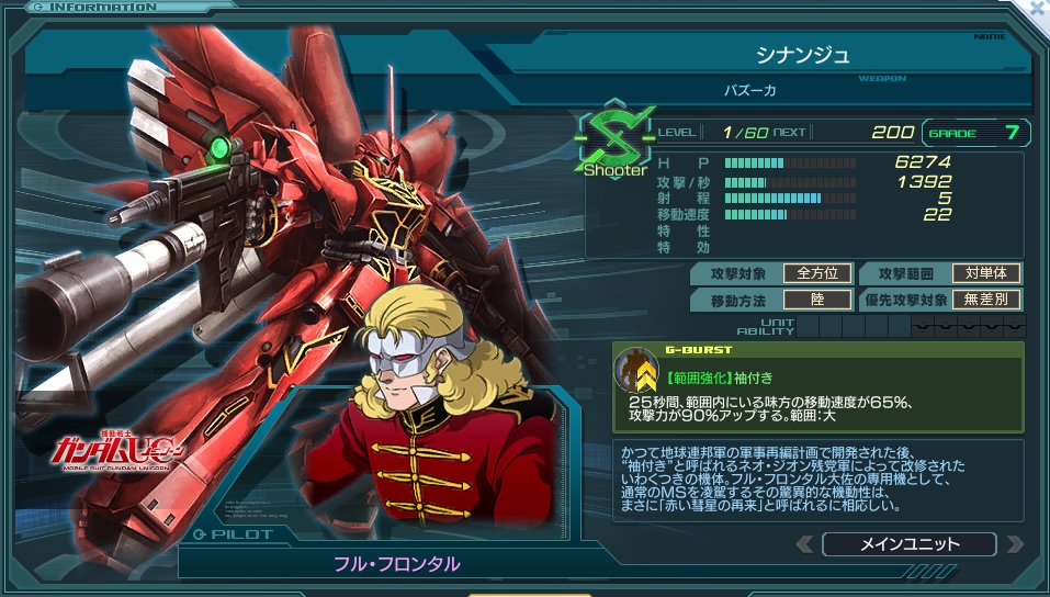 | HPの最大値が30%アップし、Gバーストゲージの上昇速度が60%アップ、 Gバースト効果時間が100%延長する。 | |||