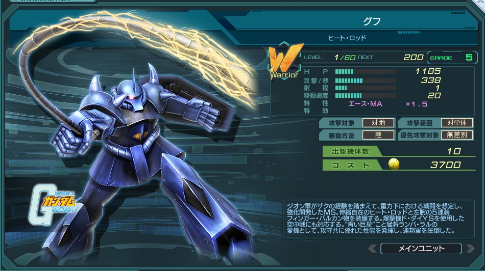 一覧 量産機 | エース | MA 最終ステータス 量産機 | エース | MA 比較データ エースGバースト | シリーズ別早見表 | 特性早見表| MS索引 赤字はレベルアップによるMAX値