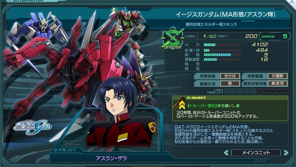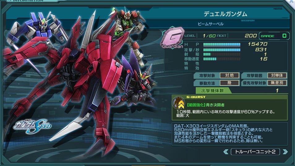 また、G型であるデュエルを含めて全ユニットが無差別・移動速度16とメインユニットと同じ対象を狙いやすく調整はされている。
