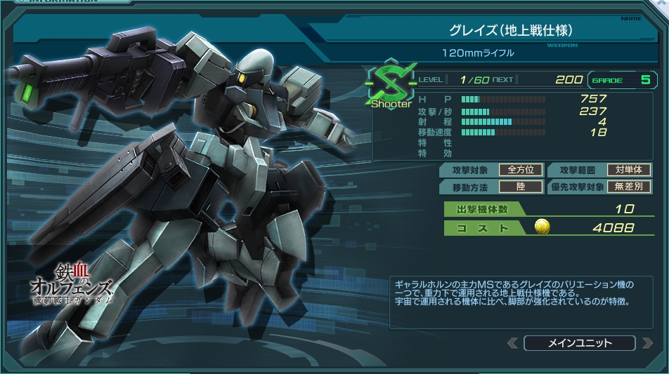 ![]() | 名称 | グレイズ(地上戦仕様) | ||