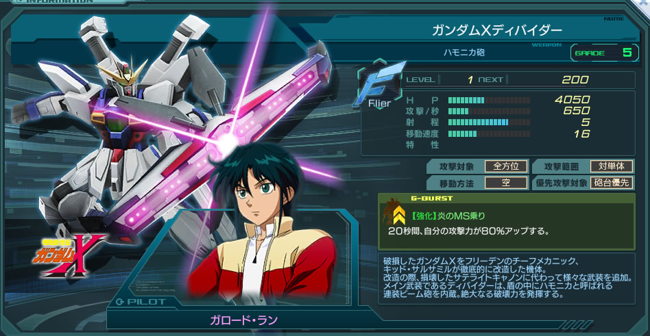 背部にセットされたエネルギーポッドにより稼働時間も延びるなど、対MS戦における運用性は通常のガンダムXから大幅に向上した。