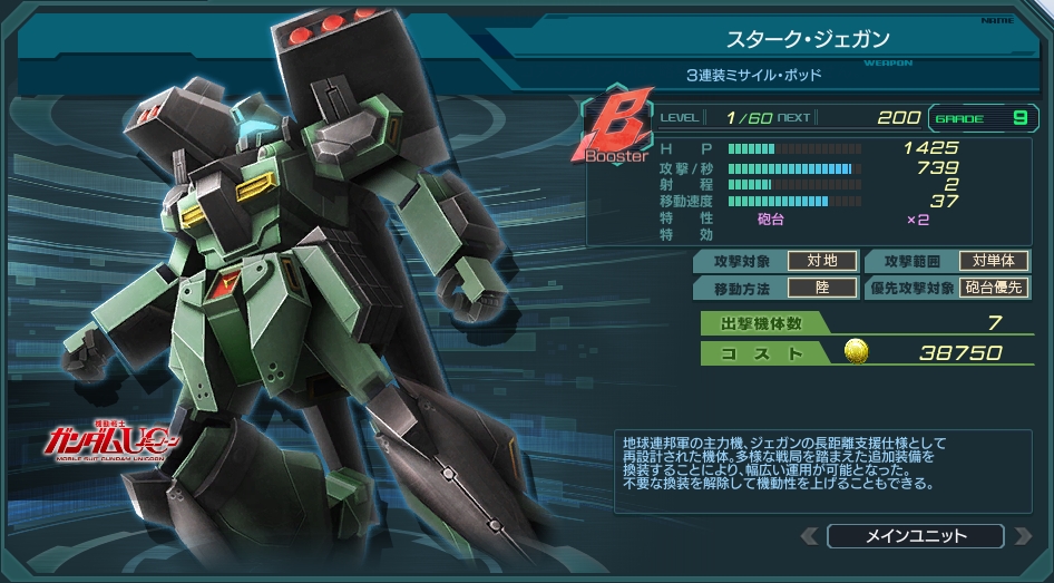 ただし、特性が他の砲台優先B型と違い2倍にされている。出撃数もLv60時点で最大10機と最低数。
