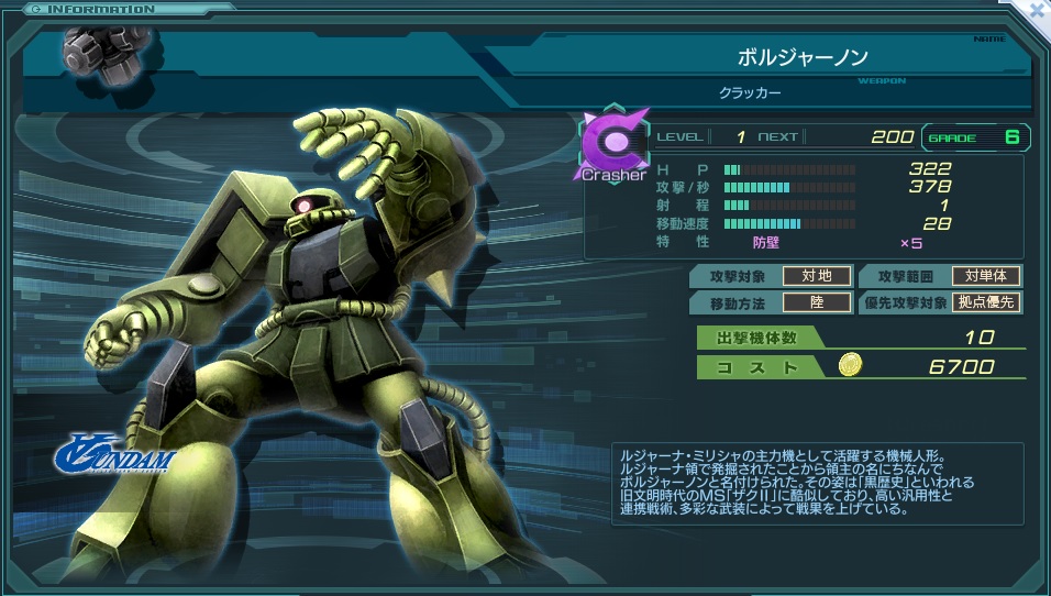 ただしグレードを並べた場合、デナン・ゲーに勝る部分がコストの安さしかないのが痛い。