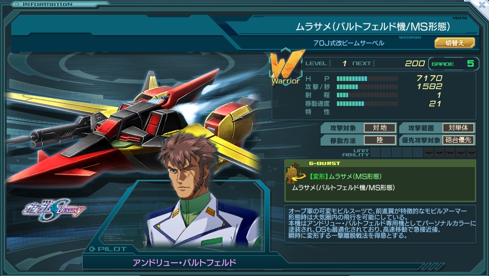 ![]() | 名称 | ムラサメ(バルトフェルド機/可変) | ||
