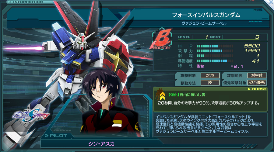 余談だが、機体アイコンがインパルスとほぼ一緒(背中のフォースシルエットがちら見される程度)で、標準ソートで横に並んでいるので見分けづらい。