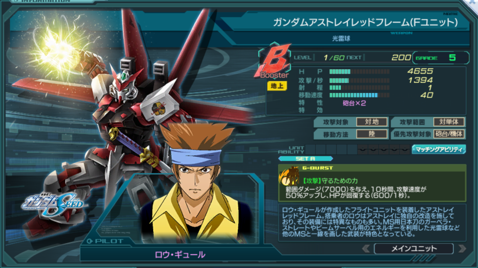 一覧 量産機 | エース | MA 最終ステータス 量産機 | エース | MA 比較データ エースGバースト | シリーズ別早見表 | 特性早見表| MS索引 赤字はレベルアップによるMAX値 基本ステータス