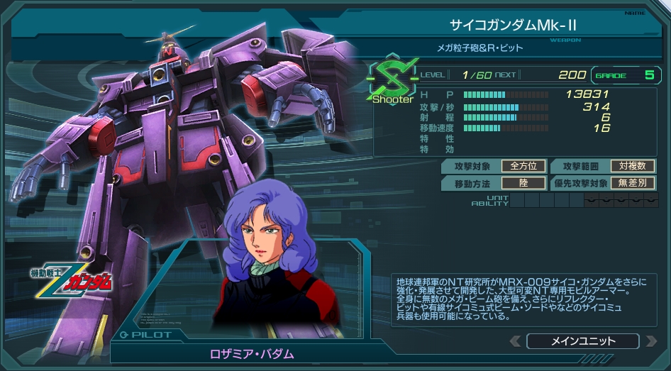 一覧 量産機 | エース | MA 最終ステータス 量産機 | エース | MA 比較データ エースGバースト | シリーズ別早見表 | 特性早見表| MS索引