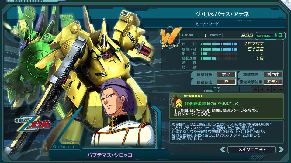 | 備考 | 使用可能までの時間:?秒 リプレイド作戦「グリプスの決戦」より入手可能 | ||