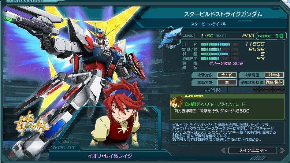 | Flier | 特性 | MA×2、エース×1.5、ダメージ吸収30% 被弾時Gバーストゲージ10%アップ | ||