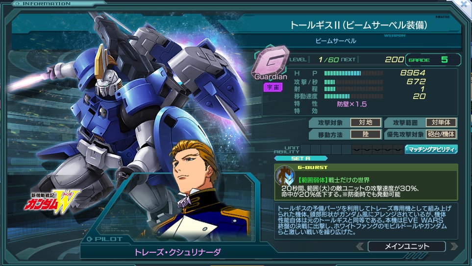 | Guardian | 特性 | 回避(一部除く)40% 命中30% 追加装甲(15000)×1 防壁×1.5 ACE×1.2 | ||