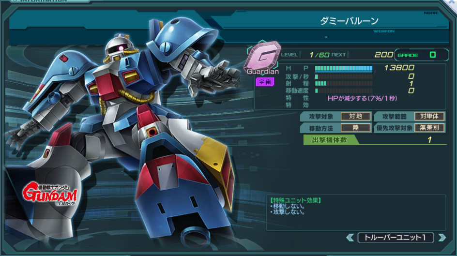 | GRADE | HP | 攻撃/秒 | 攻撃表示値 | 備考 |