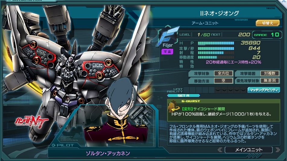 一覧 量産機 | エース | MA 最終ステータス 量産機 | エース | MA 比較データ エースGバースト | シリーズ別早見表 | 特性早見表| MS索引 赤字はレベルアップによるMAX値 基本ステータス