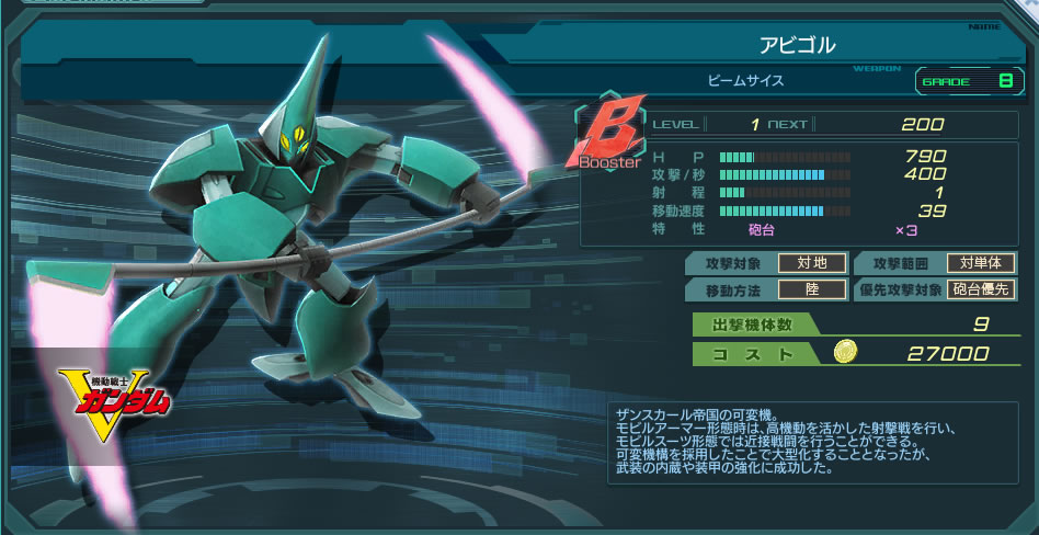 一覧 量産機 | エース | MA 最終ステータス 量産機 | エース | MA 比較データ エースGバースト | シリーズ別早見表 | 特性早見表| MS索引 赤字はレベルアップによるMAX値