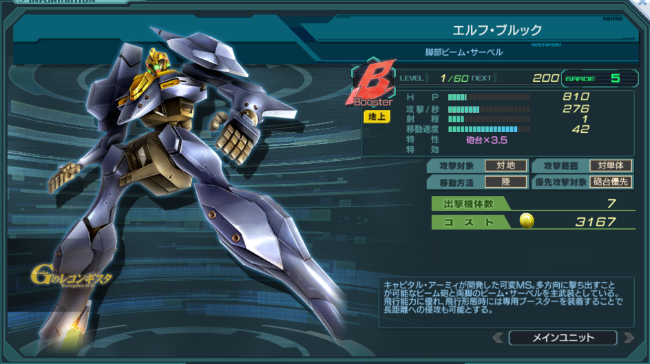一覧 量産機 | エース | MA 最終ステータス 量産機 | エース | MA 比較データ エースGバースト | シリーズ別早見表 | 特性早見表| MS索引