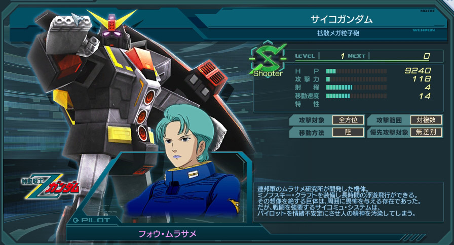 上位機として、ステータスが向上したサイコガンダム(MS)がいる。