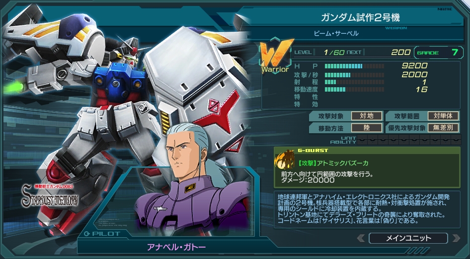 最大の特徴は、Gバーストの「アトミックバズーカ」で、なんと20,000という破格のダメージを誇る。