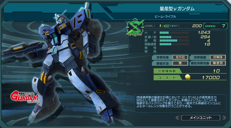 一覧 量産機 | エース | MA 最終ステータス 量産機 | エース | MA 比較データ エースGバースト | シリーズ別早見表 | 特性早見表| MS索引 赤字はレベルアップによるMAX値 基本ステータス