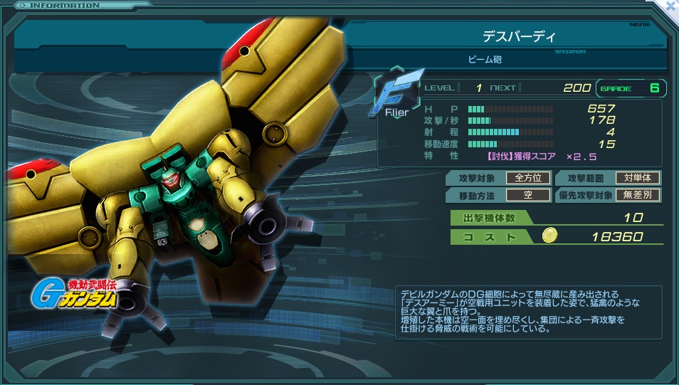 デスアーミー同様、機体そのものの数と死を恐れない進軍によるゴリ押しで真価を発揮するのだが、手数に機動力が加わるためにかなり恐ろしい敵となる。