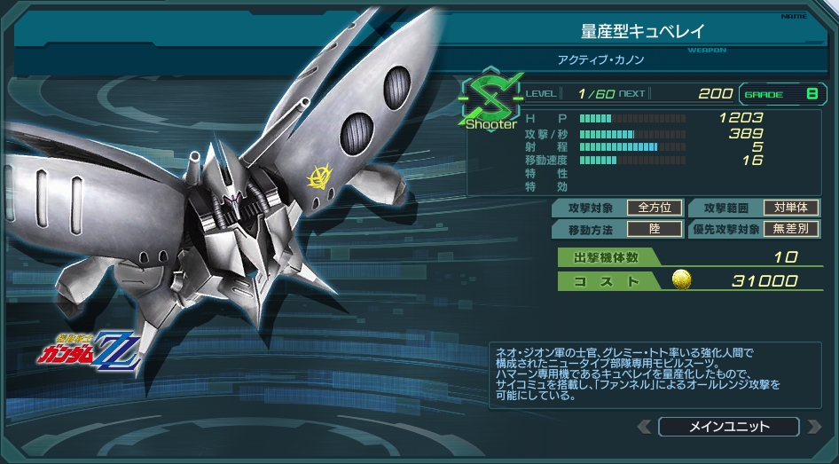 また直前のキュベレイが必要資金4,500,000という、当機体実装時点で最大規模のMS開発コストであるため