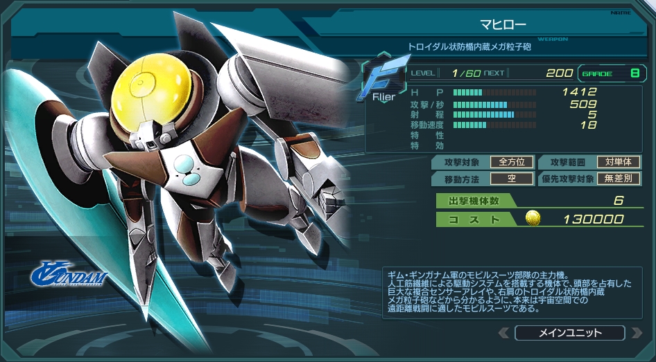 一覧 量産機 | エース | MA 最終ステータス 量産機 | エース | MA 比較データ エースGバースト | シリーズ別早見表 | 特性早見表| MS索引 赤字はレベルアップによるMAX値 基本ステータス