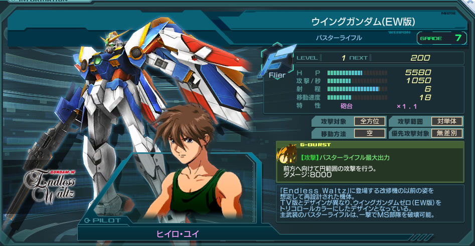 開発ツリー上の先には、やはり性能バリエーションとなるウイングガンダムゼロがいる。