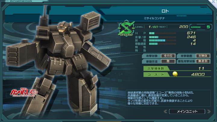 ただしグレード5入手のため気付きにくいが、火力の代償か同グレード比較すると1機あたりのHPはザクⅡ並と非常に柔らかいため、