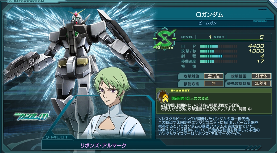 特に開幕即Gバースト発動可能になる「高出力3」が拾えると、Oガンダム到着から間もなく量産機がスパルタ兵のごとく大暴れしてくれるため、