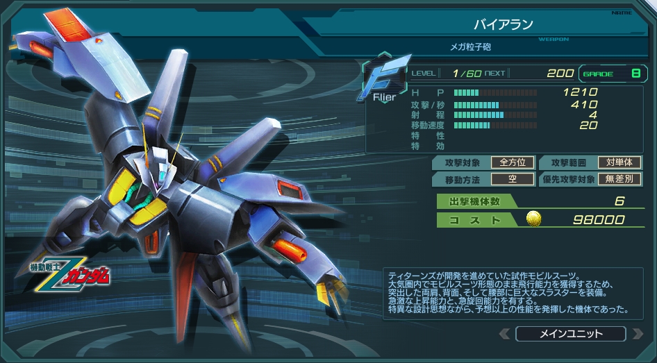 一覧 量産機 | エース | MA 最終ステータス 量産機 | エース | MA 比較データ エースGバースト | シリーズ別早見表 | 特性早見表| MS索引 赤字はレベルアップによるMAX値 基本ステータス