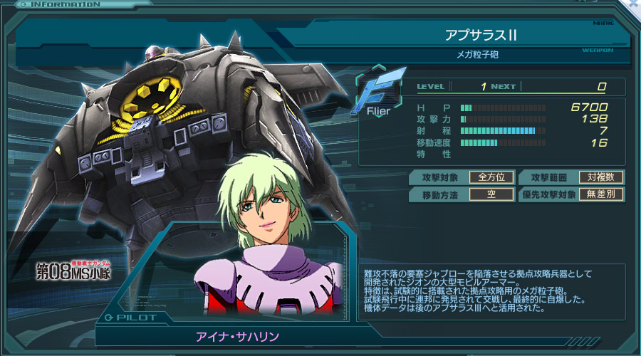 • ところでこのページの機体名称、アプラサスになってるよ…。正しくはアプサラスだよ! -- 2015-10-04 (日) 20:54:05