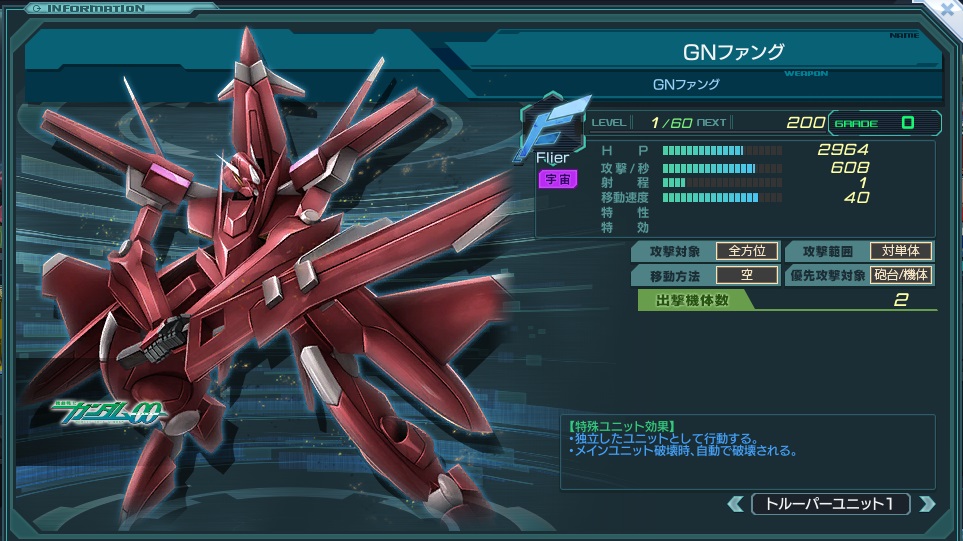 | 特殊ユニット効果 | ・独立したユニットとして行動する。 ・メインユニット破壊時、自動で破壊される。 | |||