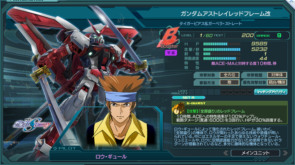一覧 量産機 | エース | MA 最終ステータス 量産機 | エース | MA 比較データ エースGバースト | シリーズ別早見表 | 特性早見表| MS索引 赤字はレベルアップによるMAX値 基本ステータス