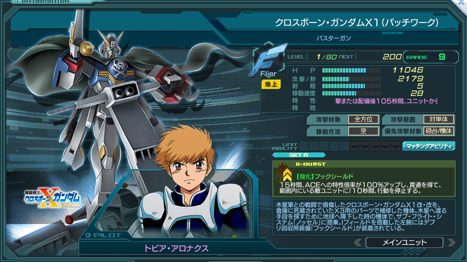 | Flier | 特性 | 回避(一部除く)60% 命中40% 追加装甲(20000)x1 出撃または配備後105秒間、ユニットから受けるダメージを90%軽減する。 ACEx1.2 | ||