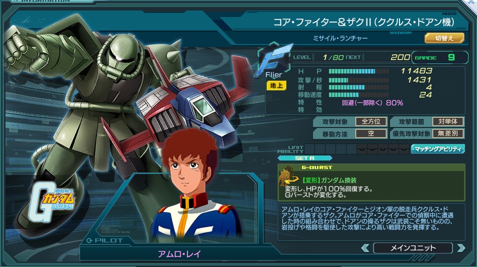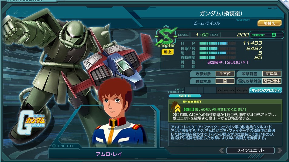 一覧 量産機 | エース | MA 最終ステータス 量産機 | エース | MA 比較データ エースGバースト | シリーズ別早見表 | 特性早見表| MS索引 赤字はレベルアップによるMAX値 基本ステータス