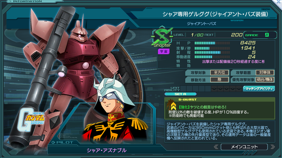 ![]() | 名称 | シャア専用ゲルググ(ジャイアント・バズ装備) | ||