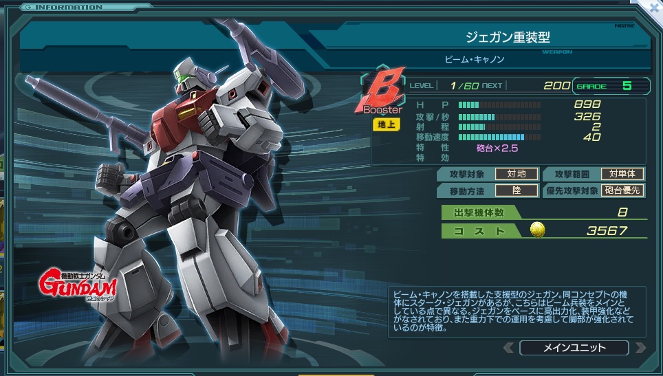 一覧 量産機 | エース | MA 最終ステータス 量産機 | エース | MA 比較データ エースGバースト | シリーズ別早見表 | 特性早見表| MS索引 赤字はレベルアップによるMAX値 基本ステータス