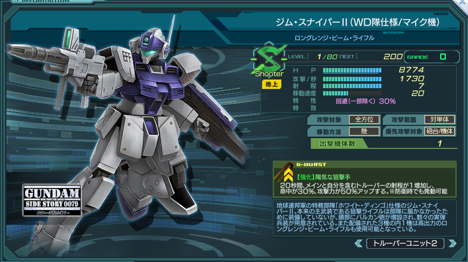 ![]() | 名称 | ジム・スナイパーII(ホワイト・ディンゴ隊仕様) | ||