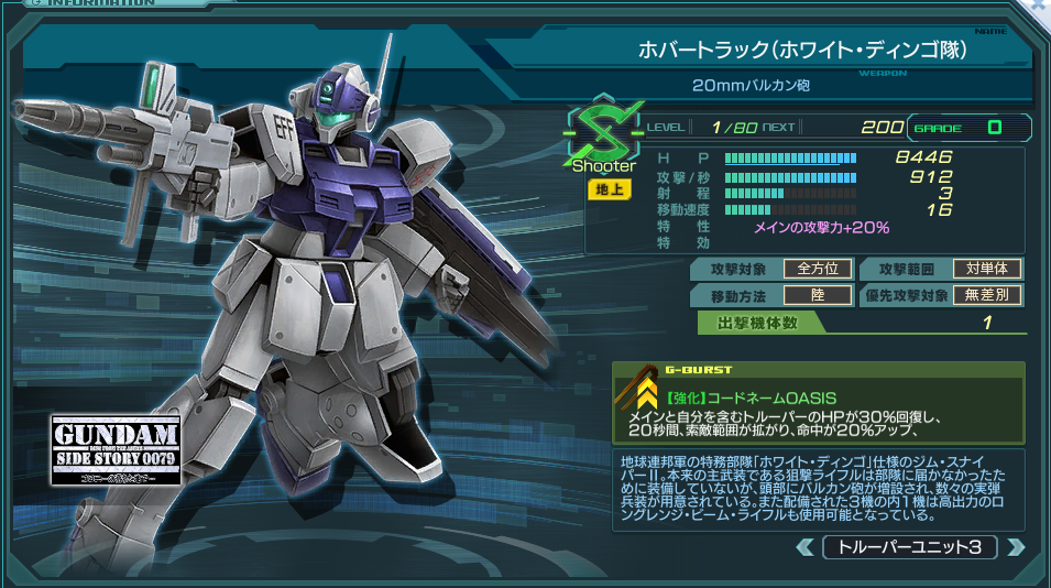| Shooterx1 | 特性 | 命中80% メインのGバーストゲージの上昇速度+50% メインの攻撃力+20% | ||