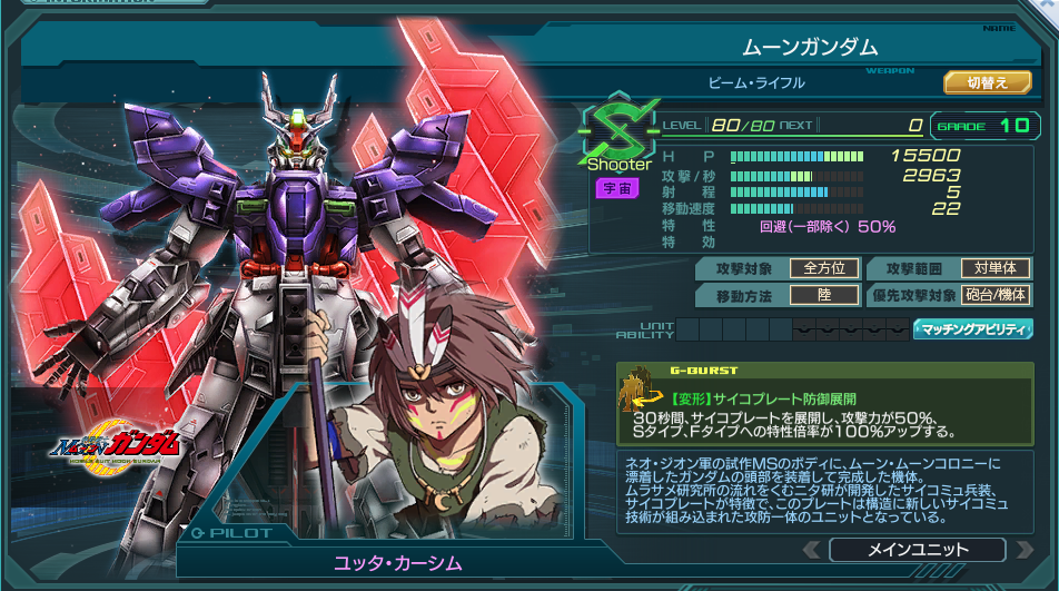 | エース機 | 登場作品 | 機動戦士ムーンガンダム | ||