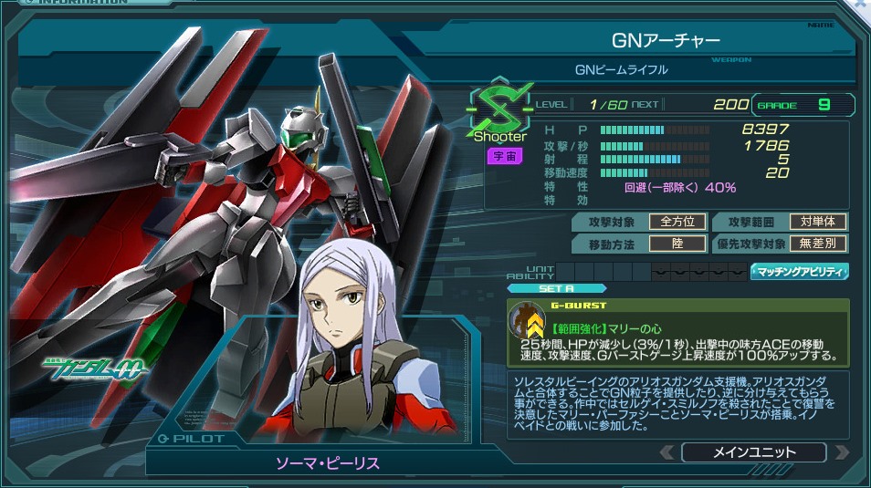 一覧 量産機 | エース | MA 最終ステータス 量産機 | エース | MA 比較データ エースGバースト | シリーズ別早見表 | 特性早見表| MS索引 赤字はレベルアップによるMAX値 基本ステータス