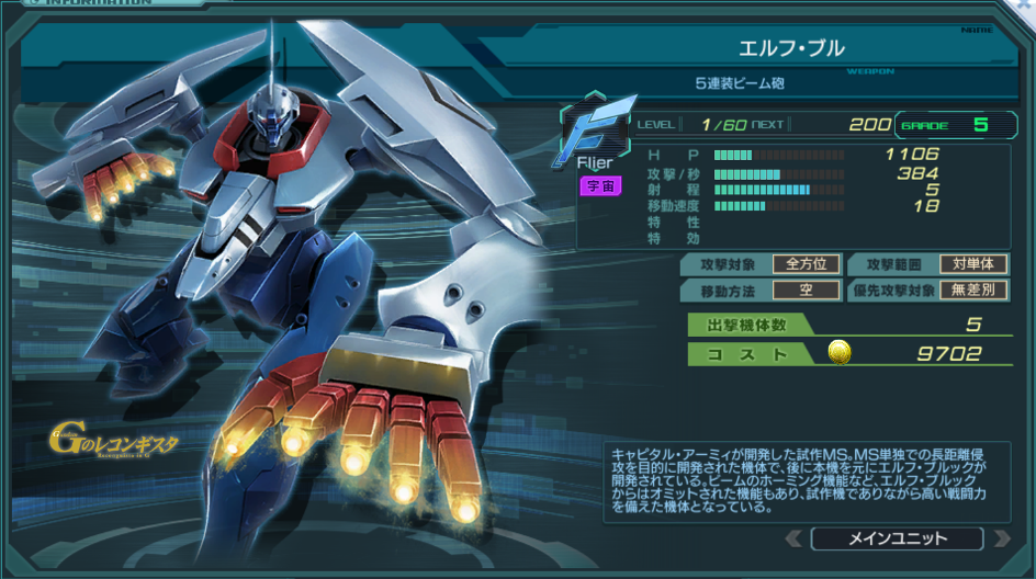 一覧 量産機 | エース | MA 最終ステータス 量産機 | エース | MA 比較データ エースGバースト | シリーズ別早見表 | 特性早見表| MS索引 赤字はレベルアップによるMAX値 基本ステータス