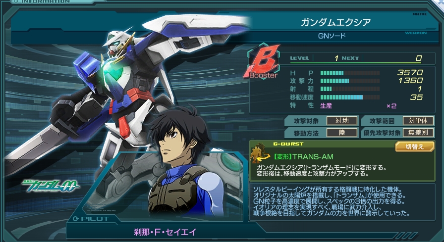 一覧 量産機 | エース | MA 最終ステータス 量産機 | エース | MA 比較データ エースGバースト | シリーズ別早見表 | 特性早見表| MS索引