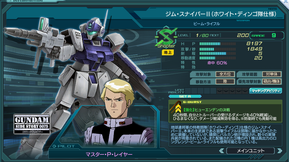 | Shooterx1 | 特性 | 命中80% メインのGバーストゲージの上昇速度+50% メインの攻撃力+20% | ||