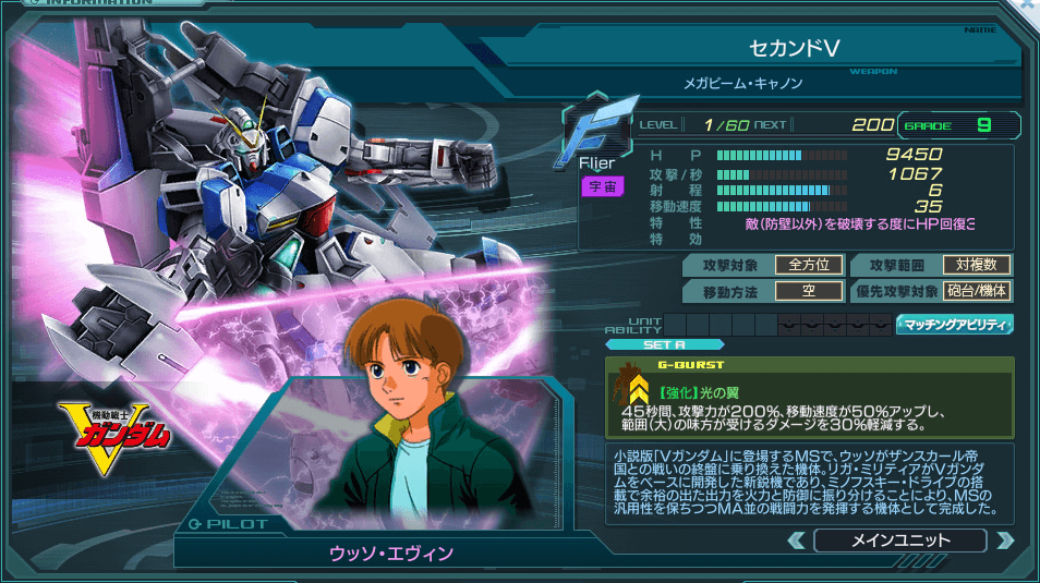 一覧 量産機 | エース | MA 最終ステータス 量産機 | エース | MA 比較データ エースGバースト | シリーズ別早見表 | 特性早見表| MS索引 赤字はレベルアップによるMAX値 基本ステータス