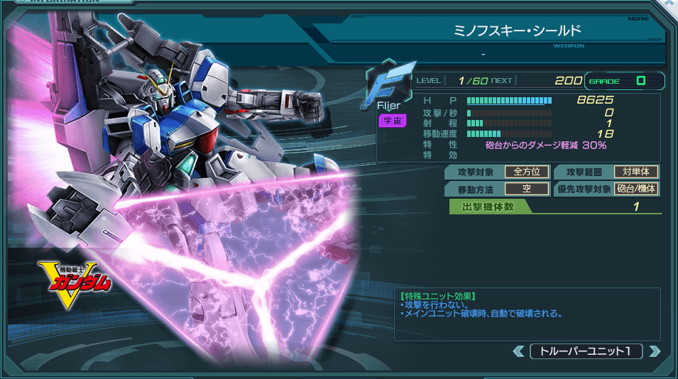 | 特殊ユニット効果 | ・攻撃を行わない。 ・メインユニット破壊時、自動で破壊される。 | |||