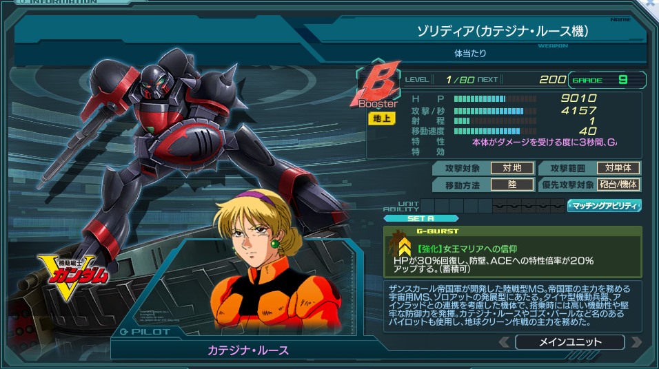 一覧 量産機 | エース | MA 最終ステータス 量産機 | エース | MA 比較データ エースGバースト | シリーズ別早見表 | 特性早見表| MS索引 赤字はレベルアップによるMAX値 基本ステータス