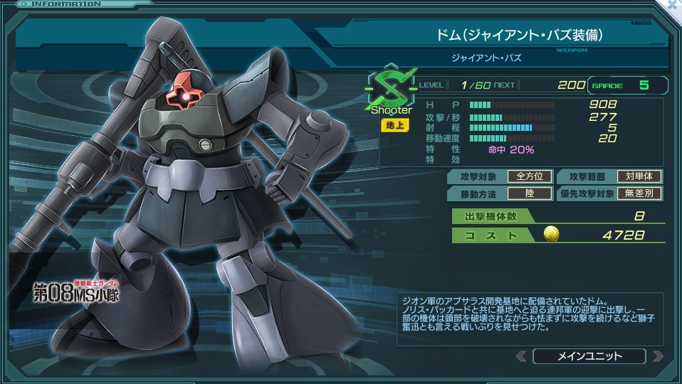 | [添付] | 名称 | ドム(ジャイアント・バズ装備) | ||