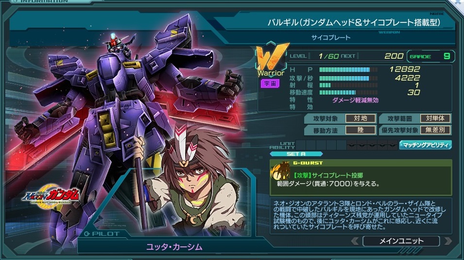 | ACEへの特性倍率が180%、全施設(防壁以外)の特性倍率、 攻撃Gバーストの威力が100%アップし、ひるまなくなる。 | |||