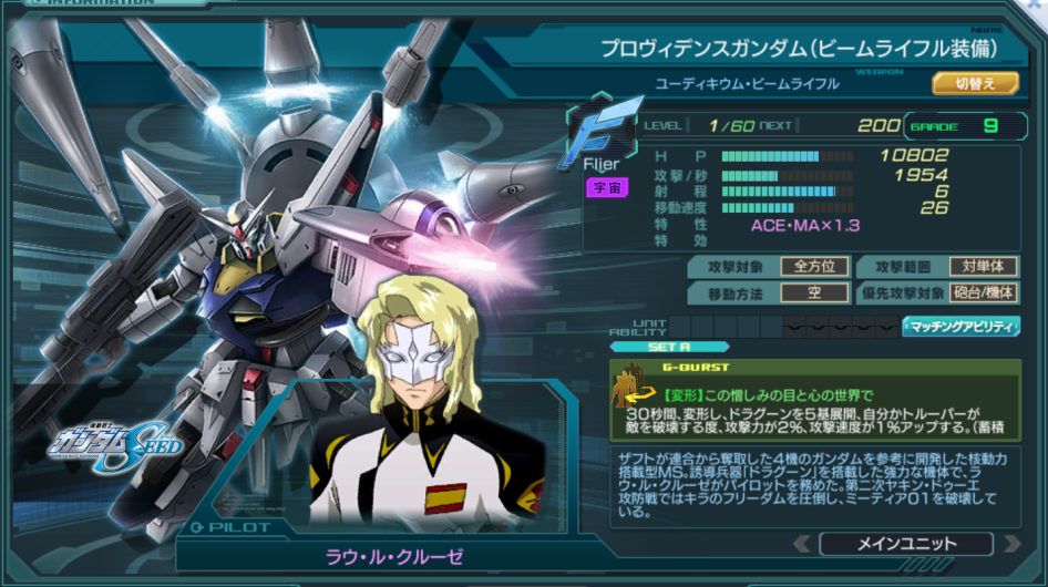 ![]() | 名称 | プロヴィデンスガンダム(ビームライフル装備) | ||